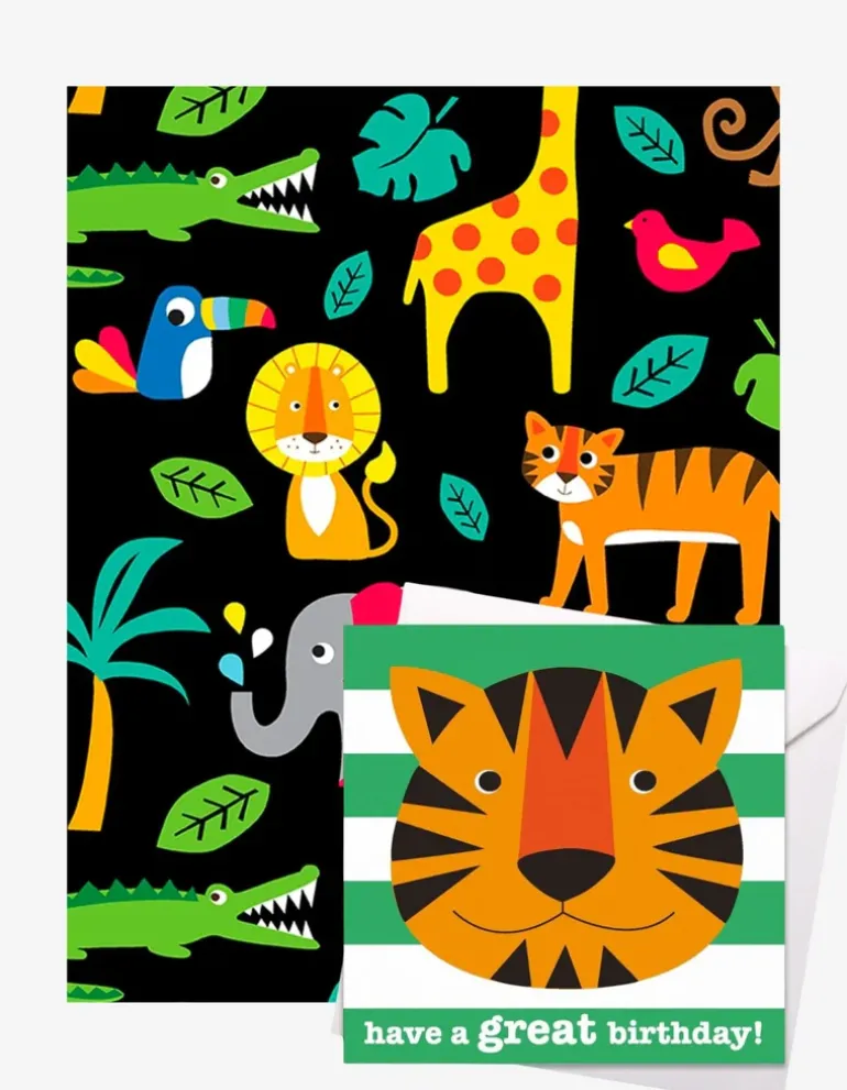 Wrap your birthday gifts with a touch of tropical fun using our Birthday Jungle Gift Wrap and Personalised Card Bundle. Thick and sustainably sourced, our wrap will make any present look amazing.