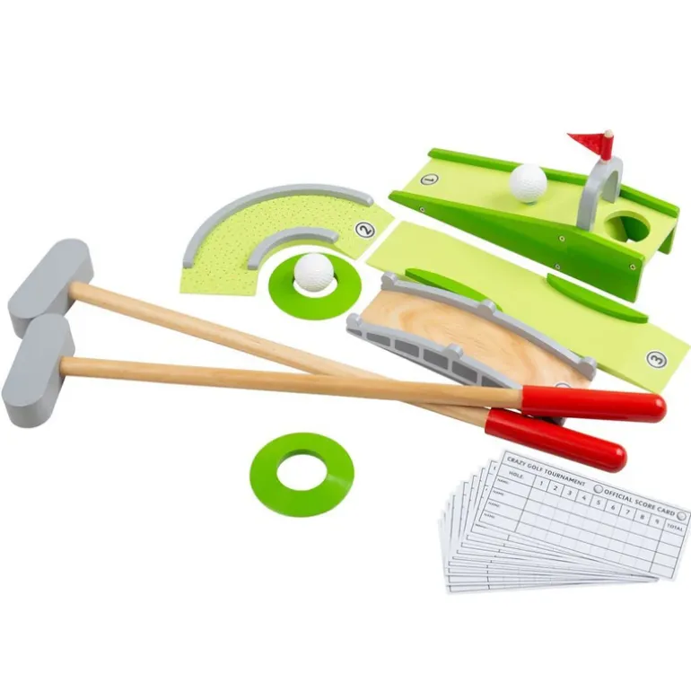 There are plenty of unusual obstacles in this Crazy Golf Set and little ones will love gripping the perfectly sized wooden clubs and improving their skill. Ideal for active play sessions between friends and family, keep a note of everyones score on the included score sheets!