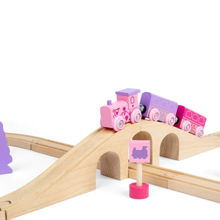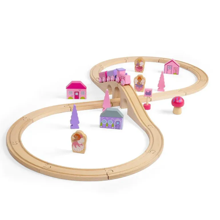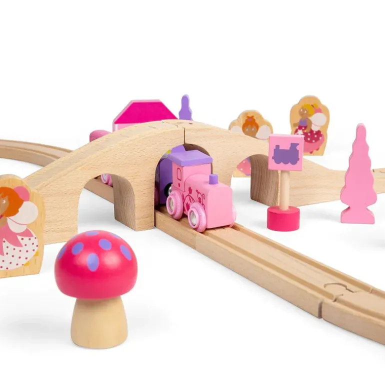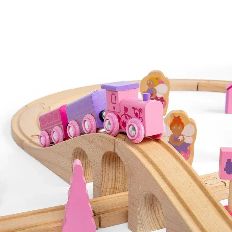Choo-choo! The Fairy Pink Train Set is ready to depart to a magical fairytale land far, far away. Pinks, pastels and fairy figures feature extensively in this bright and wonderful wooden train set.