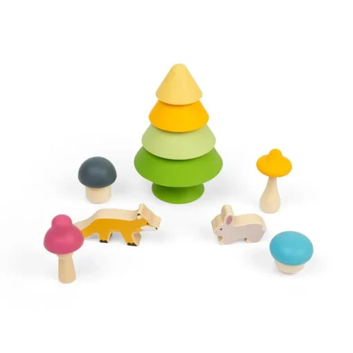 Create enchanted woodland scenes with our Forest Friends set, featuring four mushrooms, a colourful stacking tree, wooden bunny and fox.