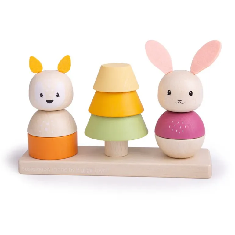 Stack, build and play! Our delightful FSC® Woodland stacking toy is crafted from sustainably sourced wood from FSC® Certified forests and features two adorable rabbit and fox woodland creatures as well as a stackable pine tree.