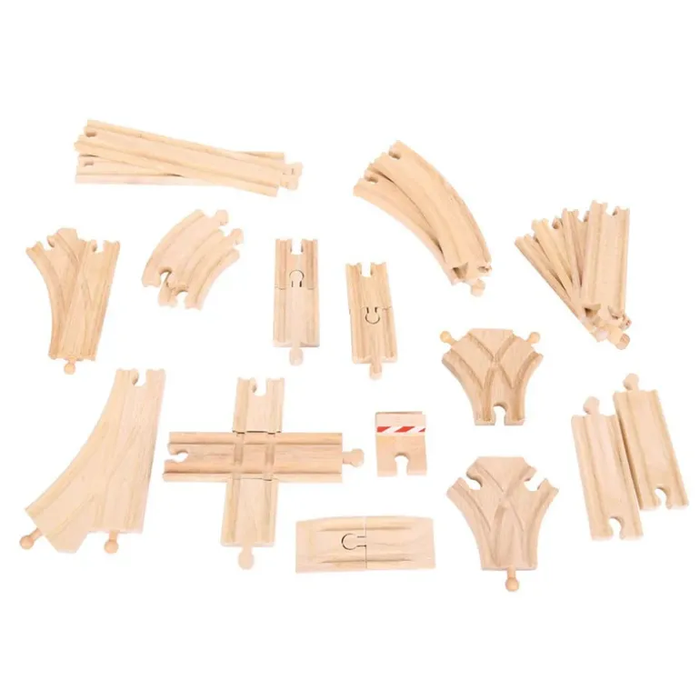 Made from high quality, responsibly sourced materials. Conforms to current European safety standards. Age 3+ years. Includes 25 train track pieces. Compatible with Bigjigs Rail and most other major wooden railway brands.