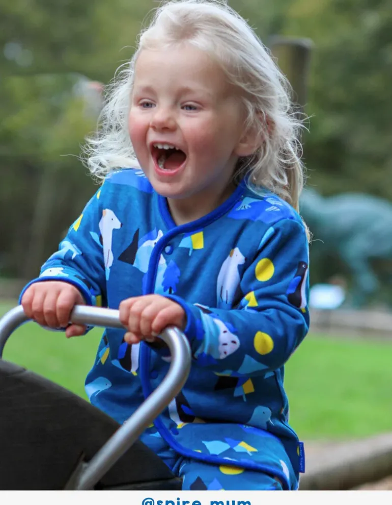 This reversible jacket is both stylish and cosy! It features a blue print with penguins, walruses, polar bears, icebergs, and mountains. Plus, it’s fleece-lined for warmth and has popper buttons and a single pocket. Treat your little one to some chill vibes and cosy style! This reversible design features all kinds of Arctic critters to explore, so they can rock both of their wild side. Fleece-lined and popper-ready, it’s designed to keep you feeling warm and looking cool! The full Toby Tiger Arctic collection features even more polar treats.