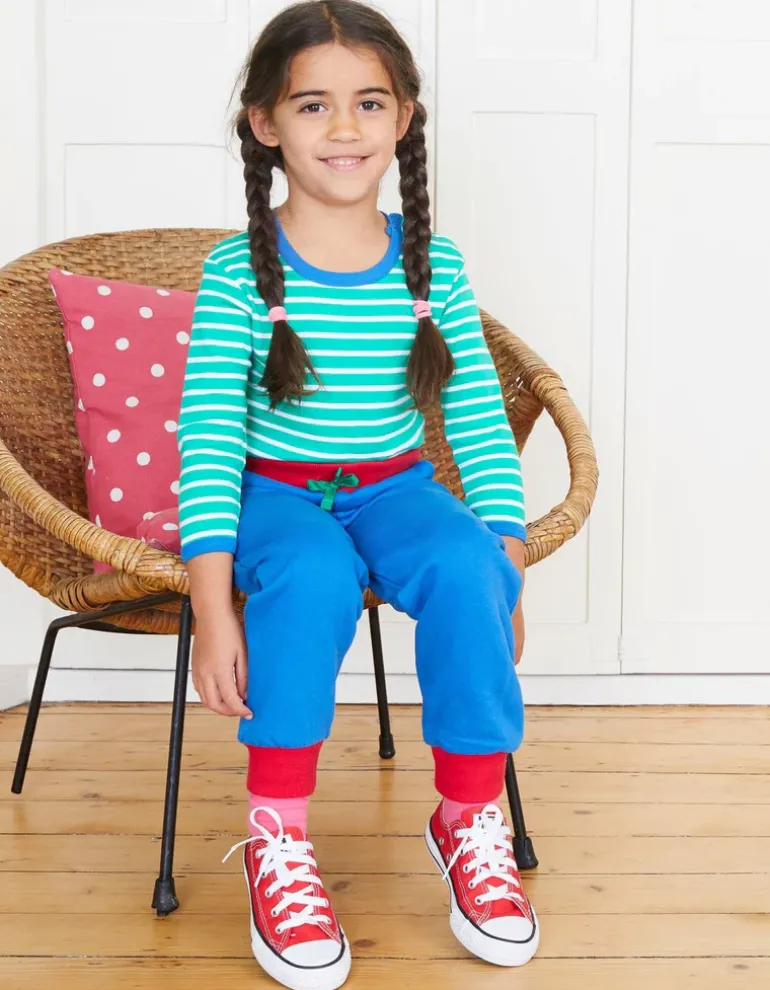 Whether they’re spending the day painting, have commited to a full day of jumping in puddles or can’t wait to run around the local soft play, make sure they’re ready for anything by dressing them in these super comfy blue kids joggers. The bright and bold blue colourway, with red contrasting waistband and cuffs, is also only one of the stylish variants available so every little one can run around in their favourite colour every day!