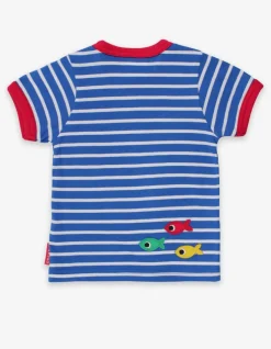 Let’s make sandcastles… watch out for the crab! Don’t worry, our applique pal won’t snap… he’s as soft as this nautical striped 100% certified organic cotton T-shirt. And, for our smaller sizes, we’ve added poppers on the neck for easy changing. Go fishing for more sea life with our ocean-inspired organic clothing online at Toby Tiger.