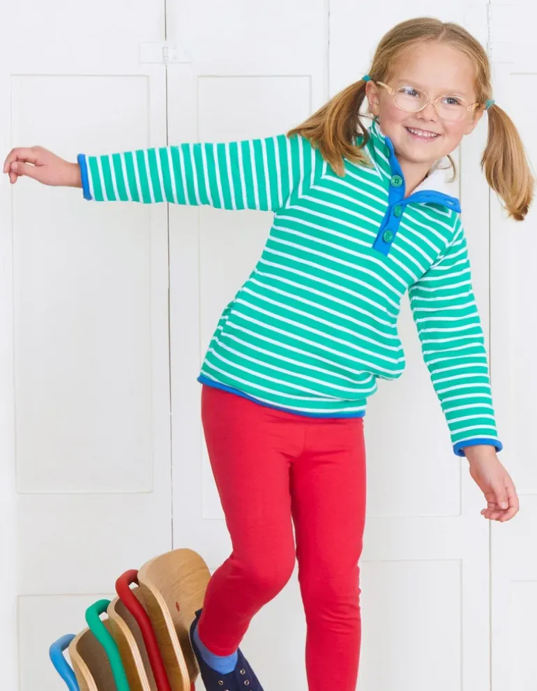 Keep little ones cosy and warm – and super stylish to boot in our green Breton organic kids fleece. Made from super soft organic cotton, the high collar can be buttoned to up the cosy factor or left loose for a casual look. Plus, there’s some all-important hidden pockets for keeping little hands toasty. The cuffs can be turned up so it can last even longer. The ultimate winter warmer! And, if you’ve got the Breton bug, full collection of organic childrenswear in Breton stripes online at Toby Tiger.