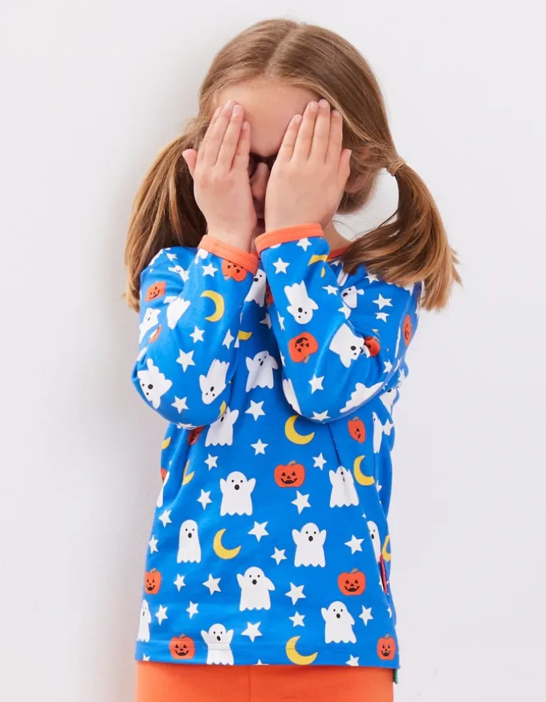Get your spook on with our friendly ghost and jack o’lantern print organic long-sleeved T-shirt. Made from super soft organic cotton, little pumpkins will be warm and snug all season long. Want to dress up for Halloween and beyond? Check out our spooky organic childrenswear collection online at Toby Tiger.