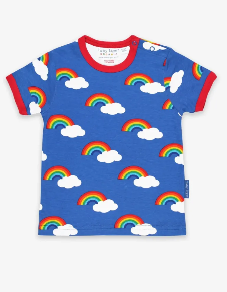 Spotting a rainbow can really make your day when it’s been drizzling all afternoon. So how about multiple rainbows on this super cheery organic T-shirt? Simply team with our organic leggings, shorts or dungarees – or check out our entire rainbow collection!
