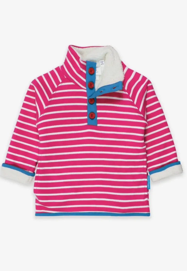 Keep little ones cosy and warm – and super stylish to boot in our pink Breton organic kids fleece. Made from super soft organic cotton, the high collar can be buttoned to up the cosy factor or left loose for a casual look. Plus, there’s some all-important hidden pockets for keeping little hands toasty.the cuffs can be turned up to last longer!The ultimate winter warmer! And, if you’ve got the Breton bug, full collection of organic childrenswear in Breton stripes online at Toby Tiger.