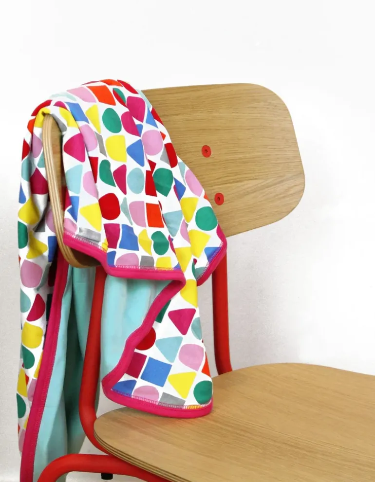 Nap time, chill time, cuddle time – our versatile baby blankets are a must most of the time! Made from our super soft and snuggly 100% certified organic cotton, this colourful building block fabric has a smooth pale green underside and features a small pocket at the front. This beautiful blanket comes rolled up and wrapped with a contrasting ribbon, and makes the perfect new baby gift.