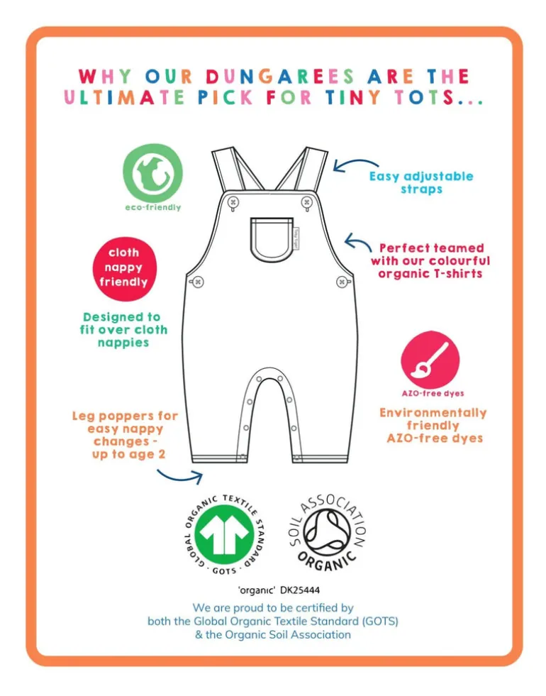 Get ready to bloom in our playful Organic Pink Flower Print Dungarees. Made with organic fabric, these dark pink dungarees feature a charming mix of light pink, yellow, orange, and blue flower print. With a convenient front pocket, your little one will be both stylish and eco-friendly!