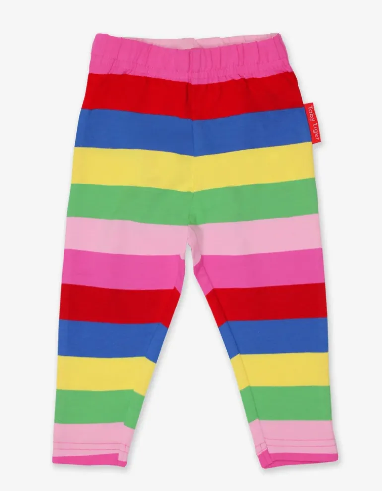 We all need a good pair of comfy leggings and we can’t resist these colourful stripes! Made from super soft organic cotton and a comfortable elasticated waistband, little legs will love our super fun leggings. Looks great with one of our plain bright tops – and if you love pink, check out our whole stripy pink collection!