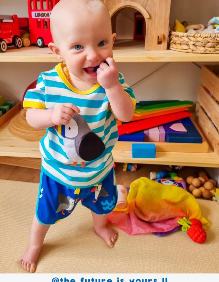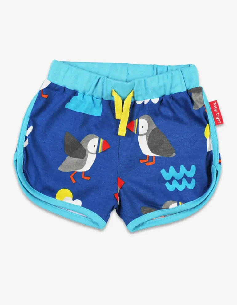 Get ready to feel the colliding combination of style and comfort with these Organic Puffin Print Running Shorts! These blue stunners will have you soaring through the sky with their print of clouds, sun, and waves featuring adorable puffins. With a drawstring waist for the perfect fit, your little one can enjoy all-day comfort while looking and feeling amazing! And don’t forget how incredibly soft they are – a little runner’s dream come true! Our Puffin Applique T-shirt is a great addition to these shorts, find them in our full Puffin range.