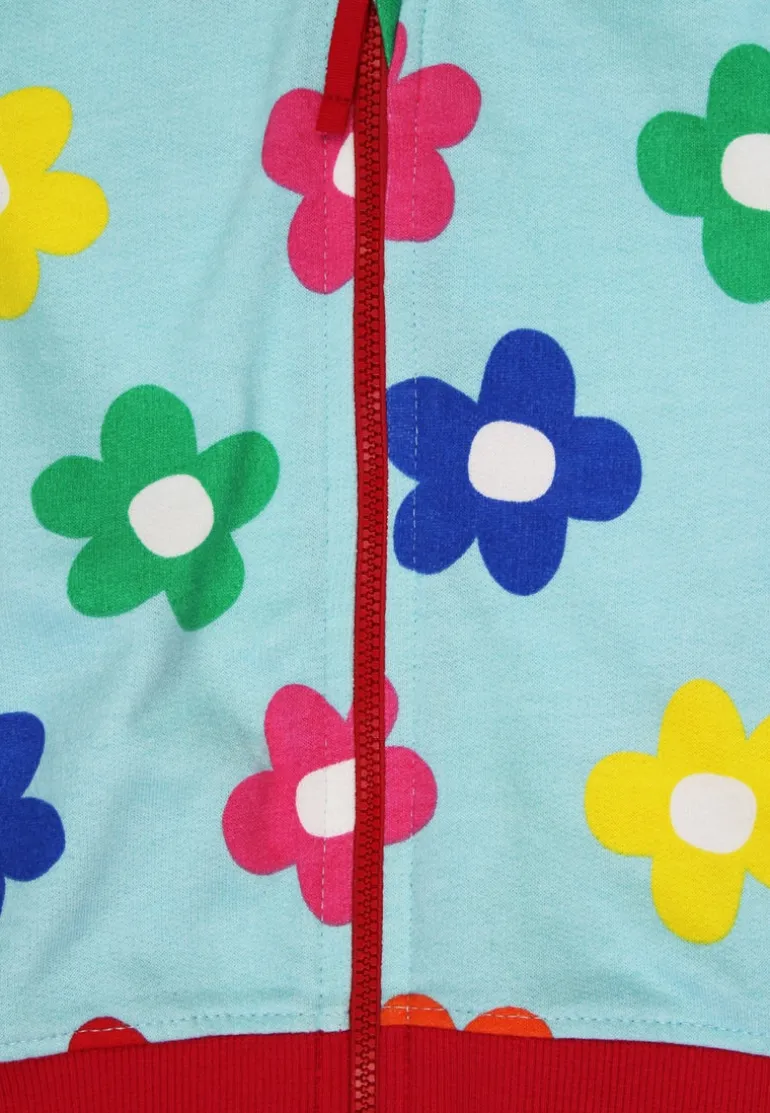 Made from 100% GOTS-certified organic cotton, it features a soft blue fabric with red accents and a cheerful multicoloured flower print. With environmentally friendly dyes and easy care in the wash, this hoodie is as comfortable as it is stylish.