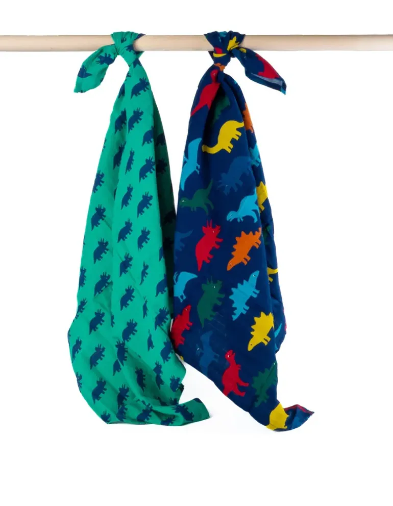 We all need a muslin to hand with babies – and an organic cotton baby muslin is even better! This 2-pack features our colourful rainbow dinosaurs, along with a stand-out dyno in contrasting colourways. Made from 100% organic cotton, this is super practical and stylish! Love the dinos? Check out our full organic childrenswear Rainbow Dinosaur collection.