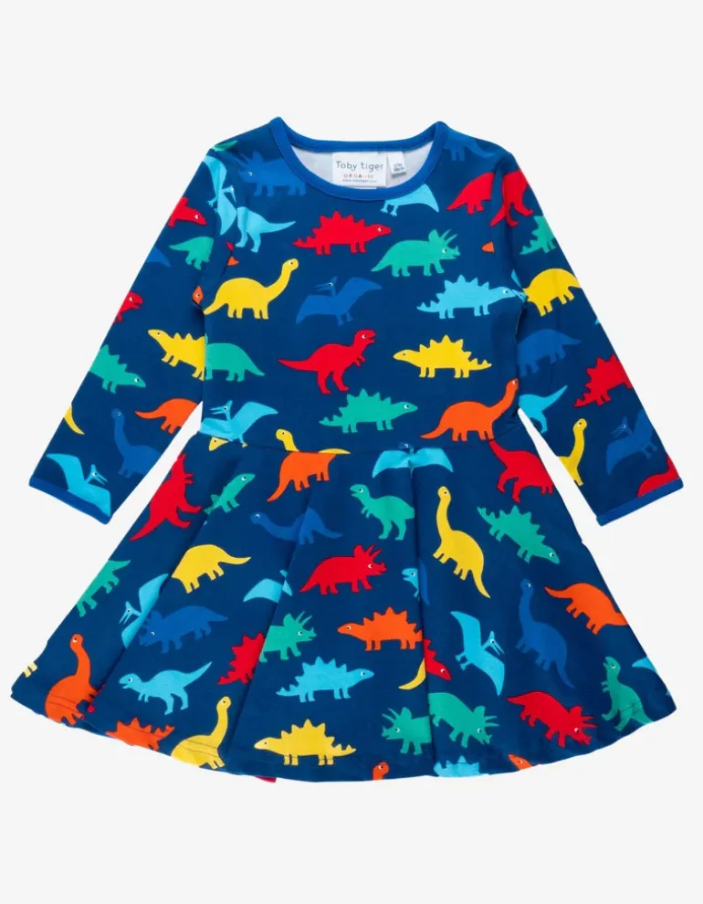Take these colourful creatures on a dinosaur stomp with this organic skater dress, perfect for twirling. Made from super soft organic cotton with long sleeves, pair with our organic leggings on chillier days – and check out more of our Rainbow Dinosaur collection here at Toby Tiger.