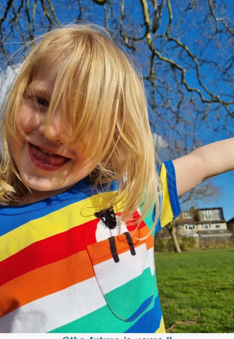 Made with 100% GOTS-certified organic cotton, this super soft and environmentally friendly shirt features a playful rainbow-striped design and a cute sheep applique peeking out of the front pocket. Plus, with easy neck popper fastening and machine washable at 30 degrees, it’s perfect for busy parents and little ones.