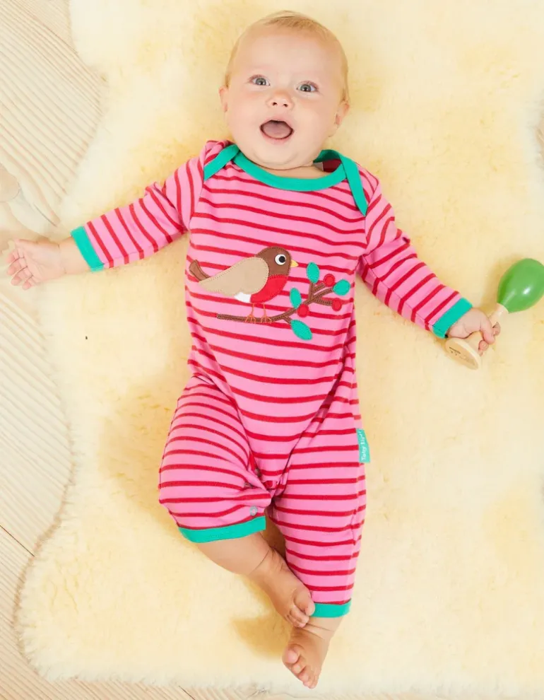 A little birdy told us it’s time for bed. Let our seasonal Robin help! Happily perched on our super soft organic cotton, this baby sleepsuit is the perfect recipe for sleep, with an easy envelope neckline and popper fastenings for a stress-free bedtime routine. Love our little pal? Check out our full Robin organic childrenswear collection online at Toby Tiger.