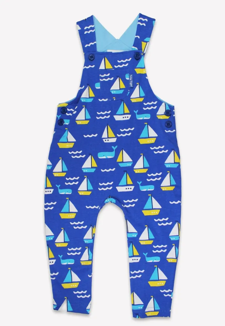 Dive into playtime with our Organic St Ives Print Dungarees! Made with 100% GOTS-certified organic cotton, these blue jersey dungarees feature a playful boat and whale print. With adjustable shoulder straps and leg poppers up to size 18-24m, they’re perfect for curious little ones.