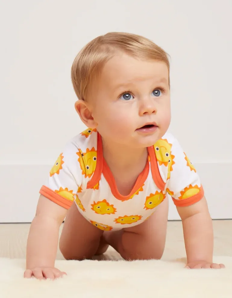 - Organic baby gift set featuring our sun cloud print baby sleepsuit, baby hat,drawstring bag and sunshine baby body.