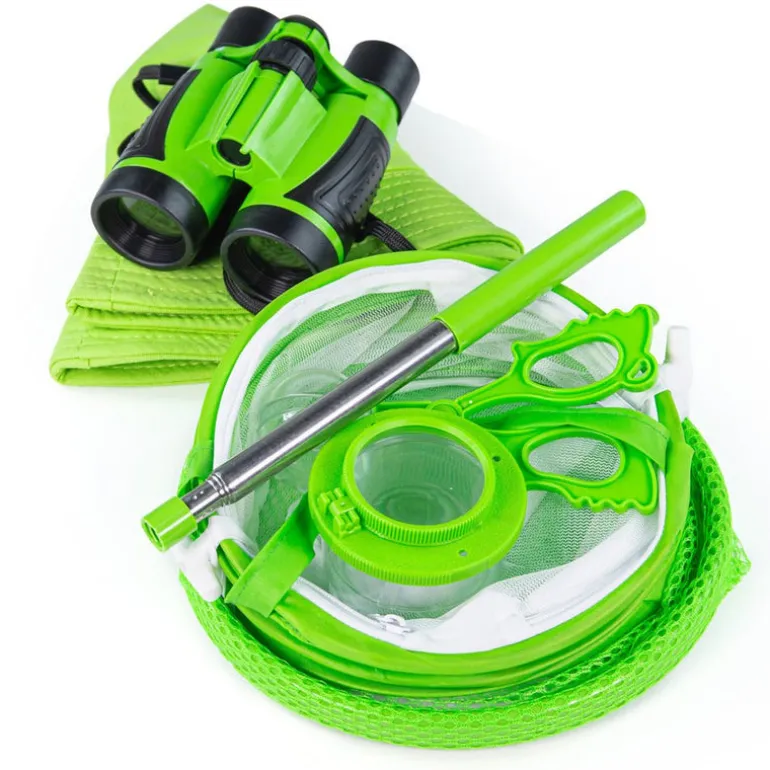 Chief Bug Catchers can put their wildlife skills to the test with our funky green Explorer Bug Hunting Kit. It features a green bucket hat, pop up bug net, pair of binoculars, telescopic net, magnifying glass & more. Use the extendable telescopic net to catch pretty butterflies; the binoculars to bird watch and observe insects from afar; the bucket hat to help you blend in with nature; the pop-up bug tent to gently catch bugs; and the magnifying jar to examine bugs up close. Kids bug catching kits are a great way to get children outside, up close with nature and enjoying the fresh air.