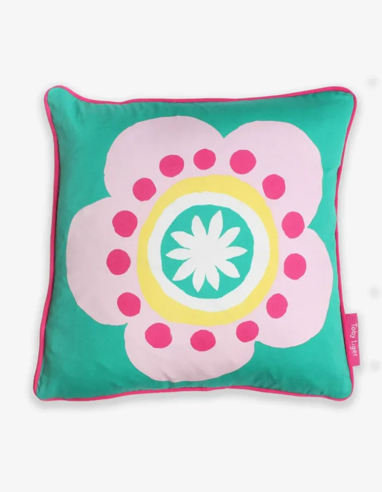 Hello petal! This brilliantly colourful cushion is super soft with contrasting pink piping. Perfect for big and little kids alike! And in the eventuality of any messy mishaps, the cover simply zips off which can then be bunged in the wash.