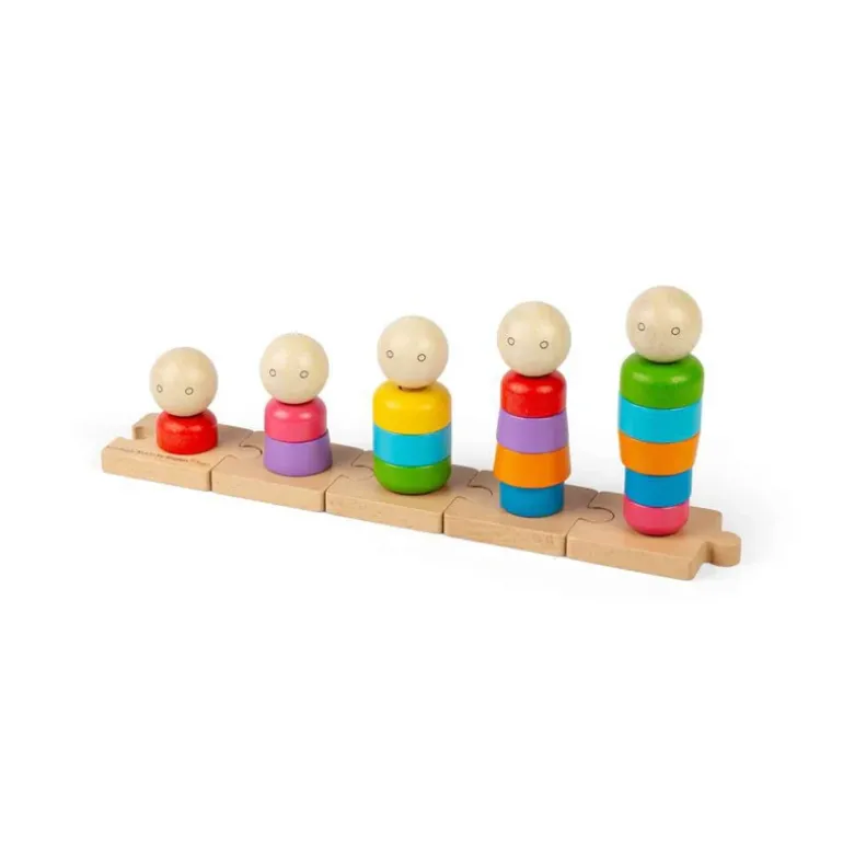 Transform stacking and sorting into a family affair with Rainbow Family! This unique stacking toy features a variety of vibrant shapes and faces that slide onto five individual pegs. Each peg stands on a small wooden puzzle piece, which can be connected together for even more entertainment. Let your little ones mix and match the shapes to create their own whimsical family characters.