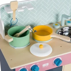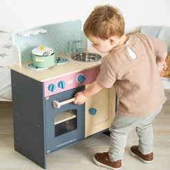 Perfect for kitchen role play, little chefs can act out fun make-believe scenes as they plan and prepare delicious meals for the family (or their teddies!). Meanwhile, the muted colours and stylish wooden design of our kids play kitchen will look gorgeous in your tot’s bedroom or playroom. Pair with our wooden play food for more imaginary play possibilities.
