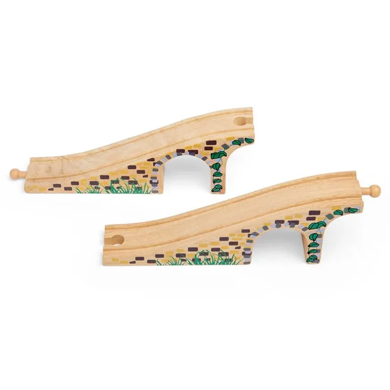 Who says straight paths have to be dull? Spice up your wooden train set with our Three Arch Bridge! Young train aficionados will have a blast watching their trains go over (or under) this stunningly designed bridge. Made with sustainable FSC® Certified wood and safe, child-friendly materials, this two-piece addition is compatible with most major wooden railway brands. Don’t miss out on the fun – get your Three Arch Bridge today!