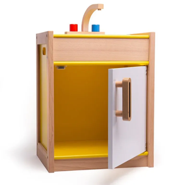 Complete your kitchen with a child-friendly sink to clean up those dirty dishes! The charming Tidlo wooden Play Sink has a tap, door, and storage under the sink for tiny trinkets. It even comes with a removable plastic tub for effortless cleaning.