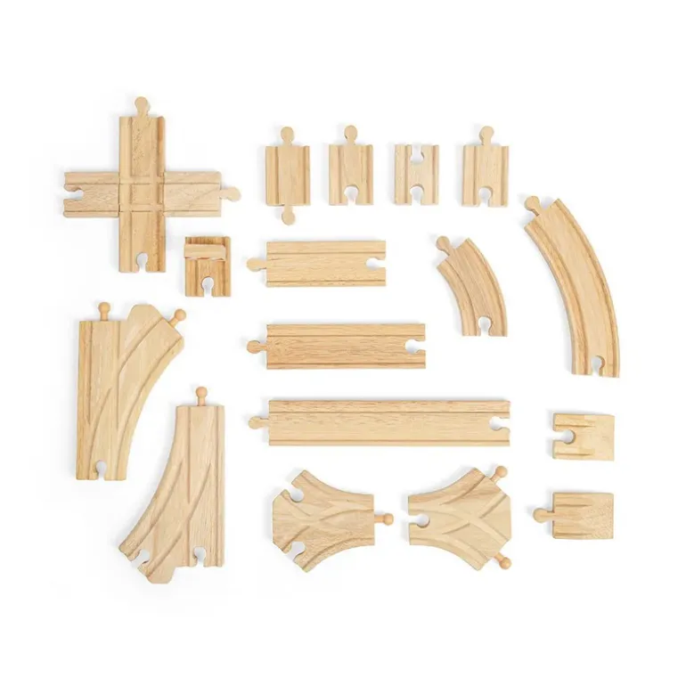 Young train enthusiasts can easily expand their railroad empire with this massive Train Track Expansion Bundle. Complete with 49 track pieces – such as crossovers, bumpers, straightaways, bends, and others – in varying sizes, this wooden bundle will spark endless creativity and exploration. Plus, it can enhance essential skills like fine motor control and critical thinking.