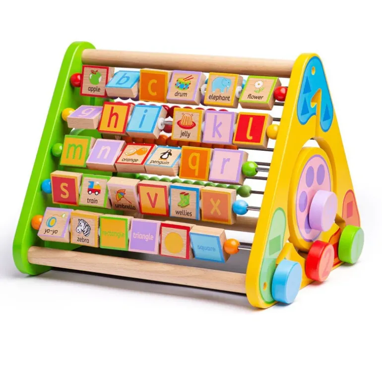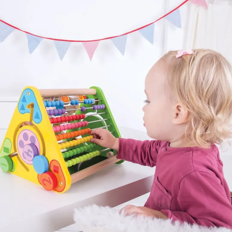 The ultimate baby activity toy, our wooden Baby Activity Centre has 5 activities in 1! With no detachable pieces, our activity centre is ideal when travelling and ensures no pieces are ever lost! An early learning powerhouse, this baby and toddler wooden activity centre is child-friendly and suitable for little ones aged 12 months +. No detachable pieces means you can safely leave your child happily playing. Helps to develop colour and shape recognition, problem-solving, fine motor skills, dexterity and hand/eye coordination.