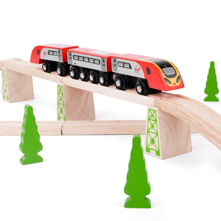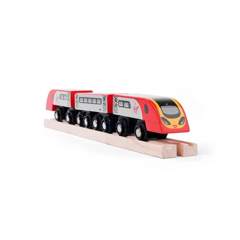 This unique tilting mechanism allows the Pendolino to travel at higher speeds on older tracks while still ensuring passenger comfort. Though it has a top speed of 140 mph, it can only reach 125 mph in the UK. For an even slower (but still enjoyable) ride, the Bigjigs Rail Virgin Trains Pendolino is perfect, powered by little hands on a wooden railway system. This toy train comes with two engines, a carriage, and two pieces of wooden track, and is compatible with other major wooden railway brands thanks to its magnetic couplings. Made from responsibly sourced materials