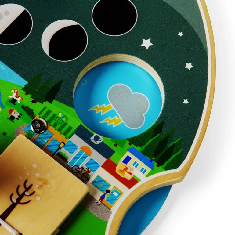 Calling all mini meteorologists! This wooden Weather Board is full of fun weather activities for kids. They can explore all four seasons using the pull-down wooden tiles, spin the wheel to change the sky from storms to sunshine, slide down the cloud dial to power the wind, and switch up the temperature using the thermometer.