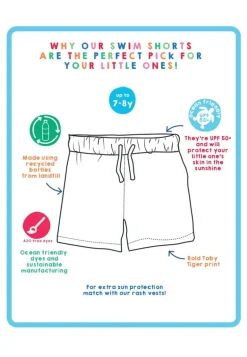 The drawcord and elasticated waistband ensure a snug fit, while the internal mesh brief provides added comfort. Dive into sustainable style with these shorts. This design is also available in a matching rash vest and baby swimsuit.