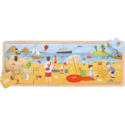 Watch as young minds are mesmerized while they fit together this wooden puzzle and see the charming seaside scene come to life. This whimsically designed tray puzzle is perfect for stimulating imagination and enhancing problem-solving skills as your little one determines the perfect spot for each piece. It’s also a fantastic way to boost language development as children chat about the bustling scene.