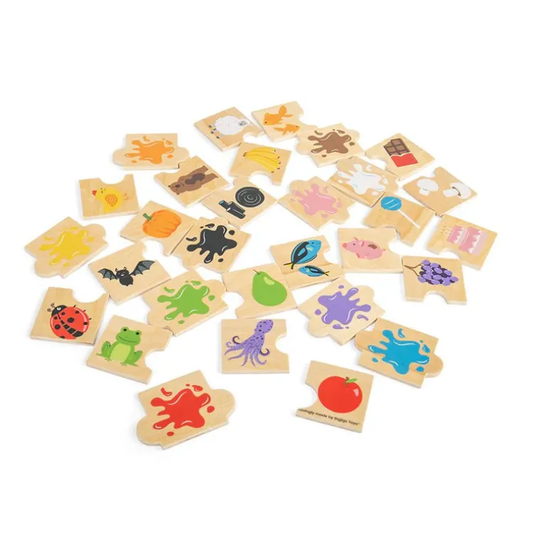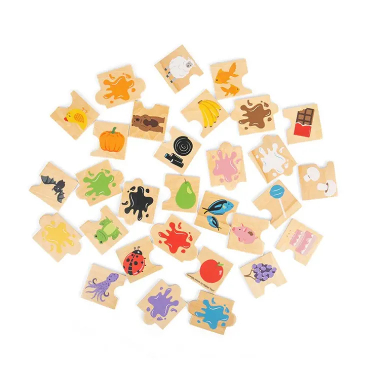 Introduce little ones to the world of colour with our Colour Splash Match puzzle game. This playful and educational matching game includes 30 wooden tiles in 10 different colors that need to be paired in groups of three.