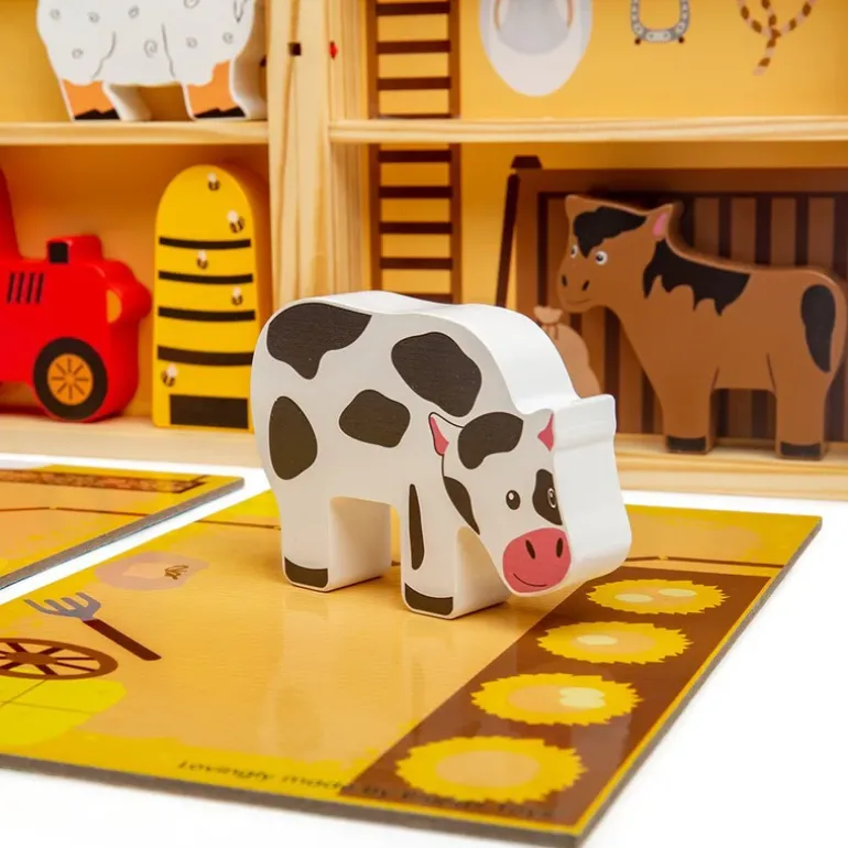 Packed with plenty of play value, our Farm Play Box introduces kids to the fun of the farmyard. This special kids activity set features chunky wooden animals such as a horse, cow, dog, pig, and sheep plus a bee hive and tractor.
