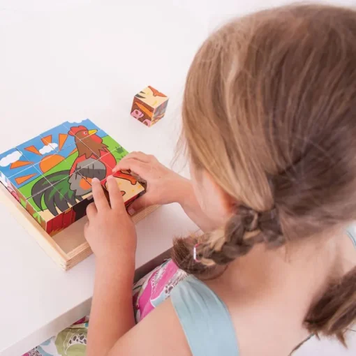 Sixteen chunky wooden puzzle pieces create six quirky images! Mix them up for some playful fun or turn them around to find the right pieces. This compact puzzle is great for developing dexterity and concentration. The included wooden tray can double as a puzzle base for safe storage.
