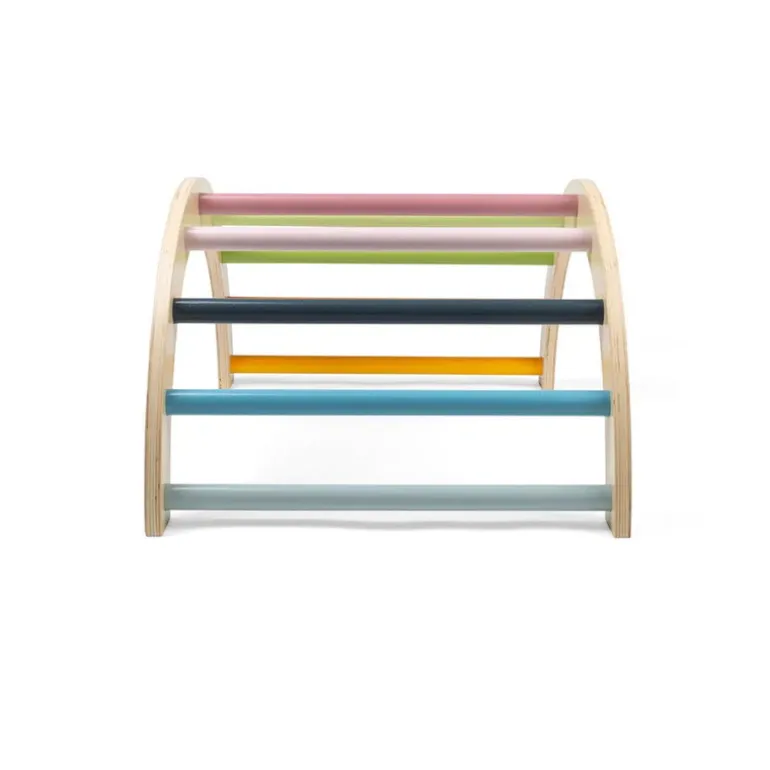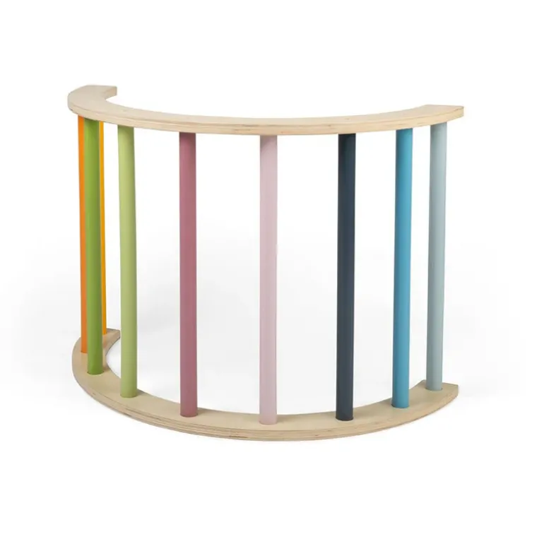 Our climbing frame features muted rainbow coloured rungs and is crafted from sustainably harvested FSC certified wood. It helps tots to develop their stability, balance, core strength and climbing skills as they make their way over it.
