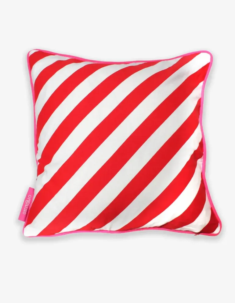 Say it with hearts! This brilliantly colourful cushion is super soft with contrasting pink piping and stripy reverse print. Perfect for big and little kids alike! And in the eventuality of any messy mishaps, the cover simply zips off which can then be bunged in the wash.
