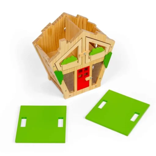Learn all about the captivating lives of bugs with our charming wooden Bug House. Designed with kids in mind, this adorable structure has a removable roof, doors, windows, and box plants, making it easy for young entomologists to get a glimpse inside. Bug houses, also known as bug hotels or insect hotels, are a fantastic way to get children interested in outdoor play.