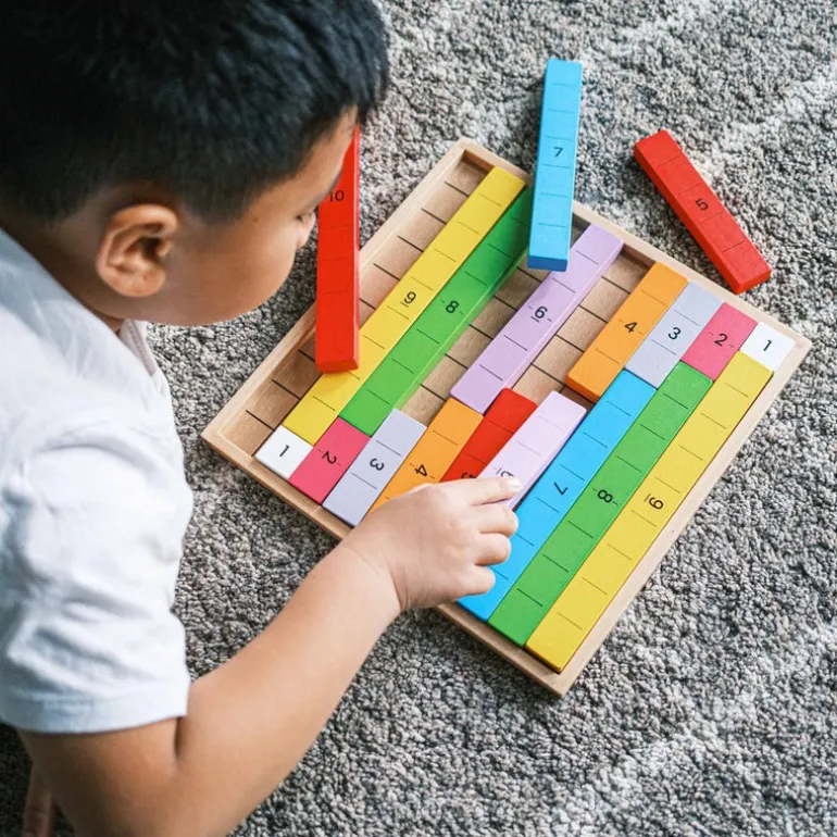 Children can learn all about numbers with our rainbow coloured number bond game. Number bonds are an important step in conceptualising numbers. The bright counters help engage mini minds as they understand what a number represents. Features numbers from 1-10. As children develop, they need to have an abstract idea of a number and this is where our number bonds to 10 game comes in! It shows the abstract idea of a number in a physical sense. Little fingers can move the wooden blocks in any direction and can see how a number is formed. Number Bonds shows kids they need to understand the possible pairs and combinations of making 10. This wooden game is one way to help reinforce and understand the concept.