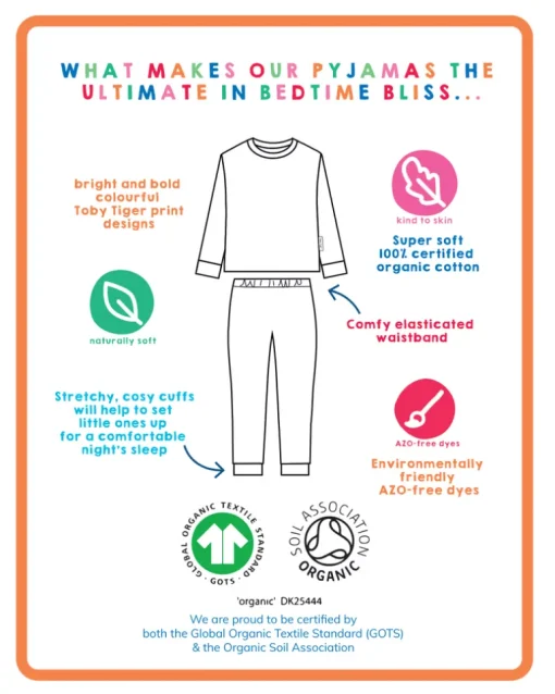 It’s time to pitch up for a lovely night’s sleep. These organic kids pyjamas feature our autumnal campervan print that showcases the best of autumnal nature – simply perfect for a creative storytime before lights out. And, with soft organic cotton and a gentle waistband, little ones will be cosy and comfy all night long. Check out the rest of the Camping collection for hoodies, t-shirts and dungarees, plus more.