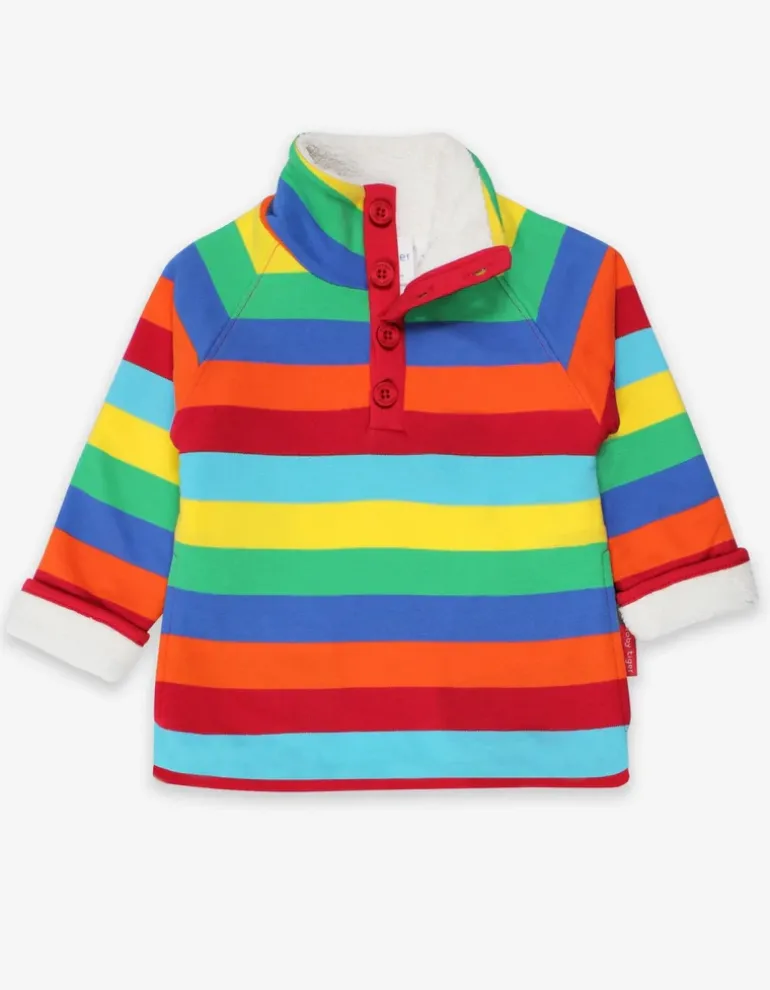 Designed for maximum warmth, our organic kids’ fleece features a multi-stripe pattern and a high collar that can be securely fastened for added cosiness. Crafted from super soft organic cotton, the cuffs can be easily turned up to extend the life of the garment. Plus, there are discreet pockets to store small items, ensuring little hands remain toasty. The perfect choice for stylish winter comfort.