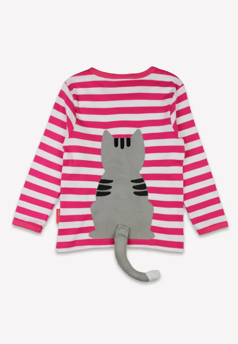 This organic pink kitten t-shirt is the purrfect addition to any cat-loving kid’s wardrobe. Featuring a playful grey applique cat with a detachable tail on the back, it adds a fun and unique touch to any outfit. Made with organic materials, it’s also an eco-friendly choice. Meow!