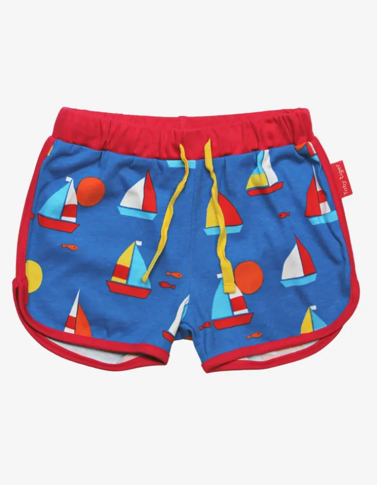 Sail into summer with these colourful sailboat print organic shorts. Made from super soft 100% GOTS-certified organic cotton with a bold red trim and adjustable yellow drawstring. Team with one of our matching organic T-shirt and check out our full sailboat collection, including yoga pants, appliques and baby essentials. Sail away with our Sailboat collection!
