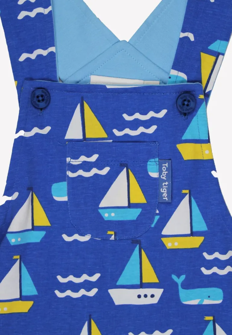 Dive into playtime with our Organic St Ives Print Dungarees! Made with 100% GOTS-certified organic cotton, these blue jersey dungarees feature a playful boat and whale print. With adjustable shoulder straps and leg poppers up to size 18-24m, they’re perfect for curious little ones.