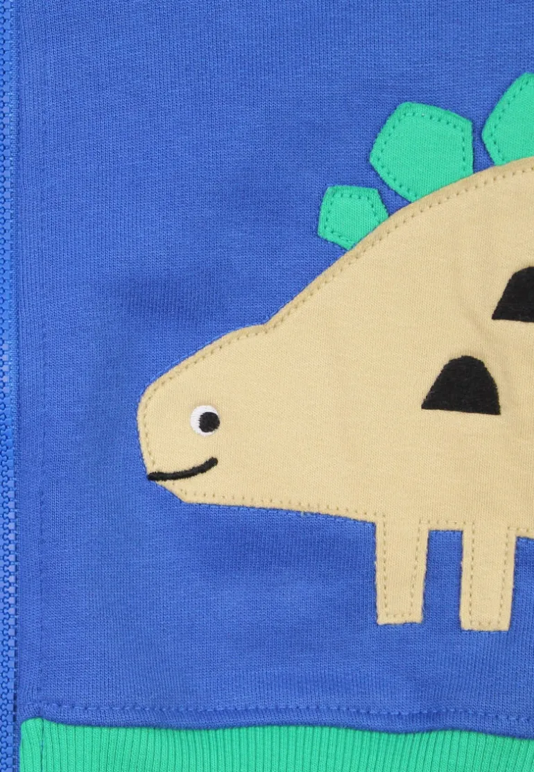 Go prehistoric with our Organic Tonal Dinosaur Applique Hoodie! This blue hoodie features spikey arm details and 2 fun applique dinosaurs with green trim. Made with organic materials, perfect for dino-loving kids (and parents who love sustainable fashion).