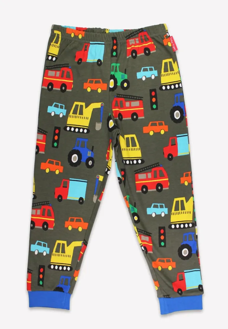 These organic transport print pyjamas will have your little one dreaming of all different types of transportation. The dark grey fabric is covered in a multi-coloured print of cars, tractors, fire engines, and more. Made of organic materials, these PJs are perfect for kids who love all things transportation. (Bedtime will be no traffic jam with these cool PJs!)